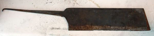 Well its not a billhook but its a large chunk of steel Picked this up from a carboot sale today for the grand total of 50p.330g, 180mm cutting edge and 5mm across the spine. Difficult to tell under the crud but looks to be made by John Guy & something or other Sheffield.(Image removed from quote.)Any advice on making it a new handle?
