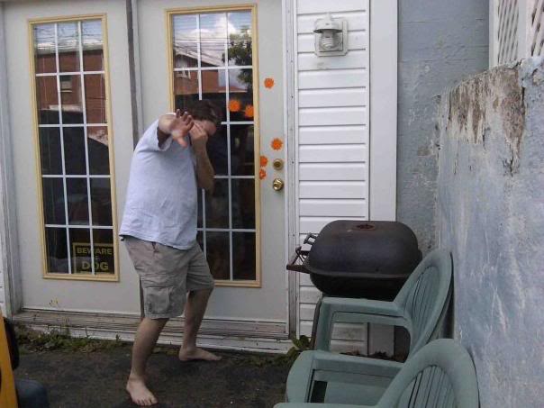 And this is the result:(Image removed from quote.)I was actually posing... had he still been shooting at me, I'd have returned fire. I think my neighbor called the police though. Painball is fun! Def