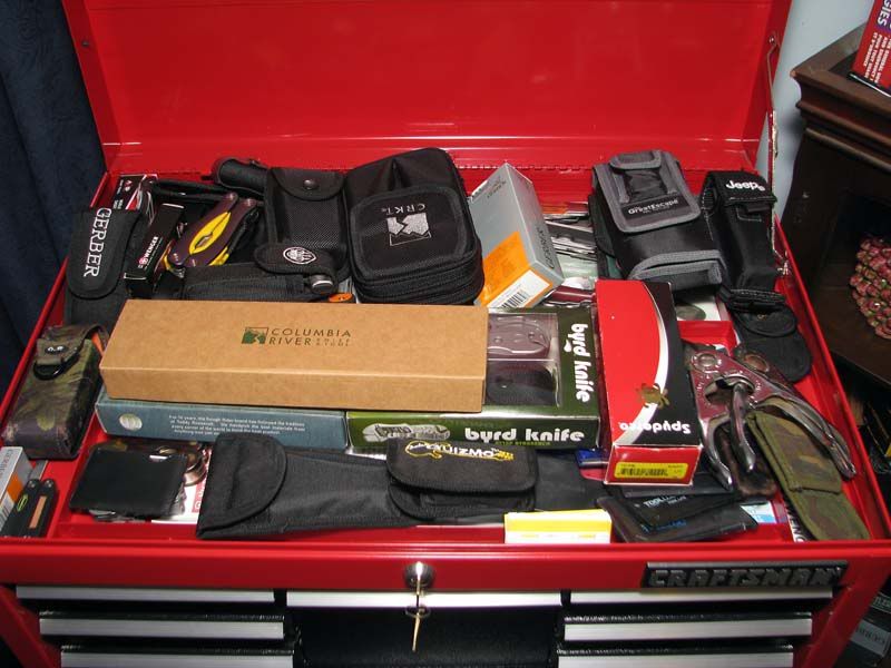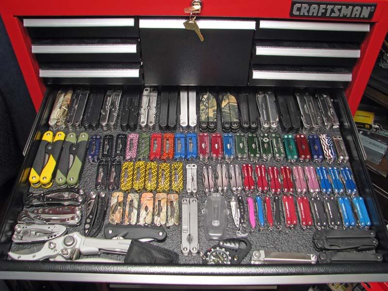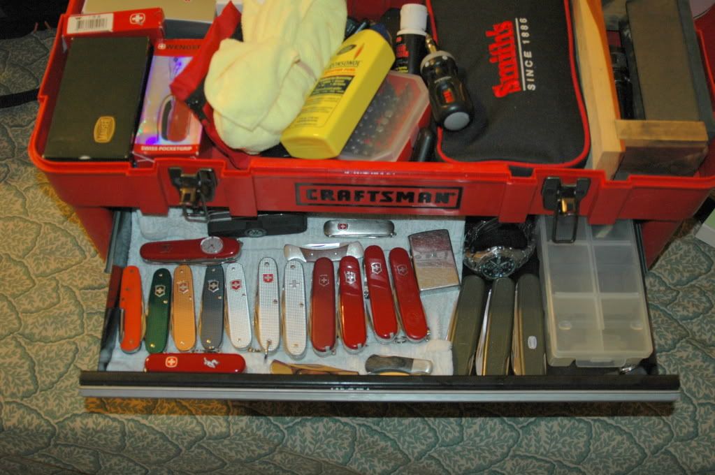 Chako,Something like the one you got I have been looking into myself. Though I'm trying to do it on the cheap and in something other than red. Not having much luck at the moment.Currently part of my Knife/SAK/MT collection rests in a couple of these I have.......(Image removed from quote.)(Image removed from quote.)........but the two I own are full. I need me something like that Craftsman.2xTap