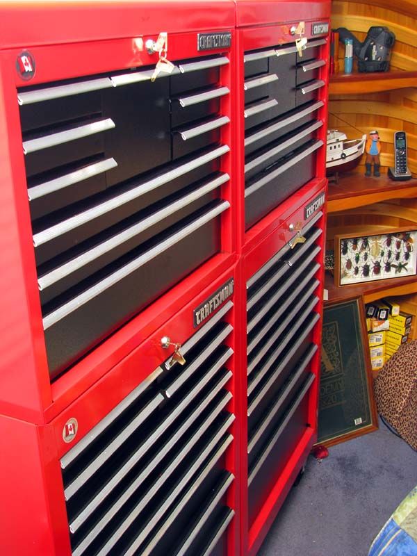 The part I was sure would be problematic was the easiest. The Sears storage cabinet has big wheels. I was able to wheel it down to the bedroom with no issues…without unloading both the cabinet and chest. I bought another unit that should come in on the 30th. My thought is to make one for SAKs and the other for Multi-tools. I will be sure to take photos of both together in the bedroom.