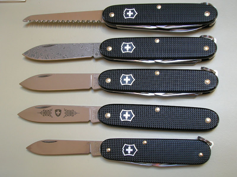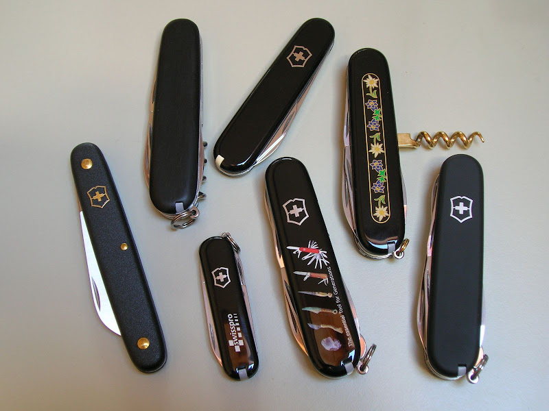 Here is a group shot of some of my Black EDC Victorinox knives that I may carry at different times. I missed putting my black Executive in the mix. Oh well this covers most of the sizes and types.