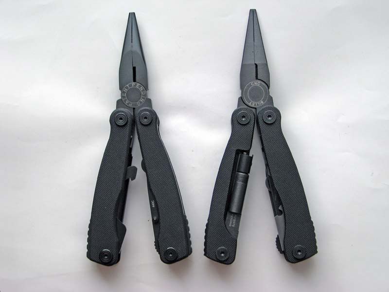 The first generation is on the left, the second generation of the right for the two following photos. One thing about Multitaskers, they are clearly labeled on the pliers. So if you can see the plier head, you don’t have to guess at what generation you have.