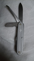 Welcome to the forum Wally It sounds like it could have been a ScoutInfo found on the https://wiki.multitool.org/tiki-index.php?page=Multi-Plier+600Multi-Lock ScoutLike the Woodsman, the Multi-Lock Scout predates the MP600 name, and is often confused with its younger cousin, the MP600 Pro Scout. This tool was only produced with non-replaceable cutters, and in a bead blasted stainless steel finish.Inside ToolsCombo Edged blade2 Sided fileFiskars Scissors#2 Phillips ScrewdriverAwl with Sewing EyeMedium Flathead w/ Bottle OpenerLarge Flathead ScrewdriverCan OpenerLanyard Ring