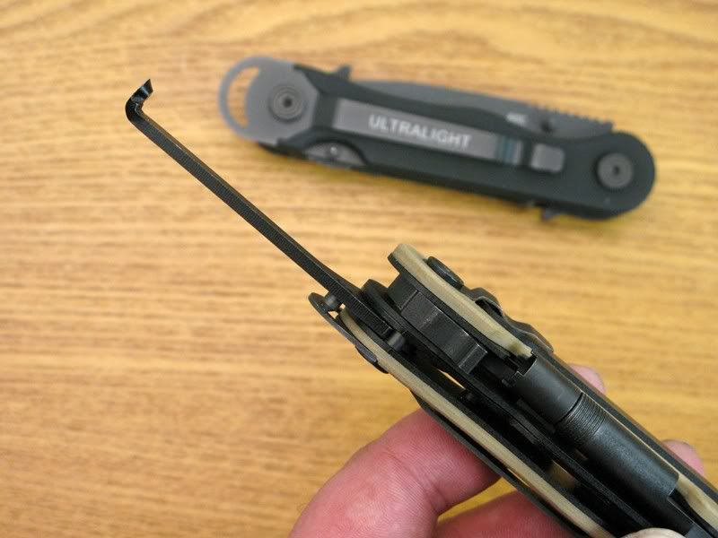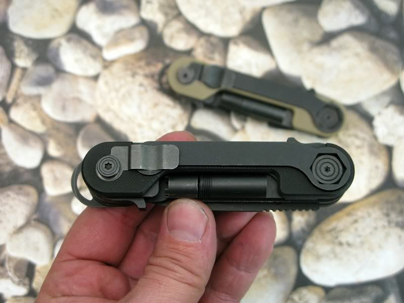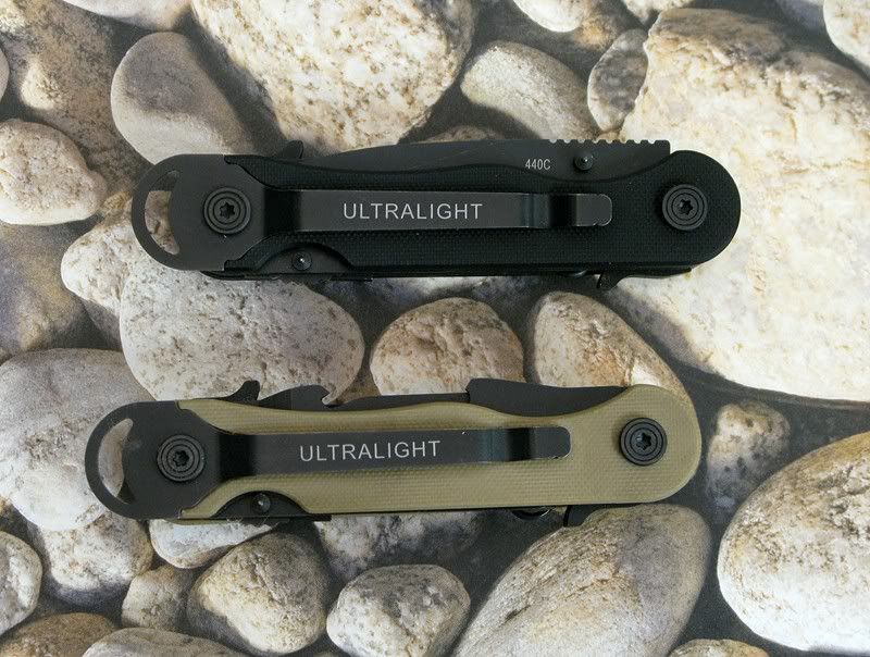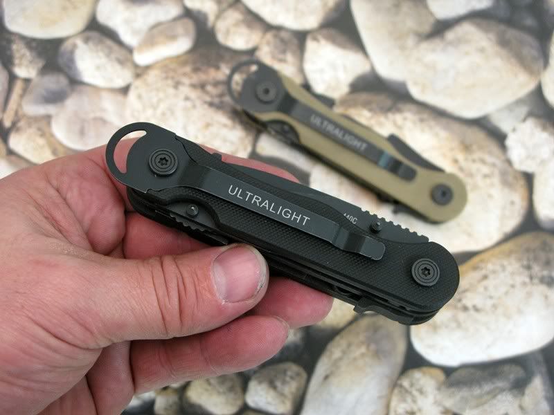 The black one however is a true prototype, intended to test out various blade and tool arrangements. It helps if you think of the Ultralight frame as a platform, and on this platform there is expected to be a number of different niche-specific models produced, including an EDC version.