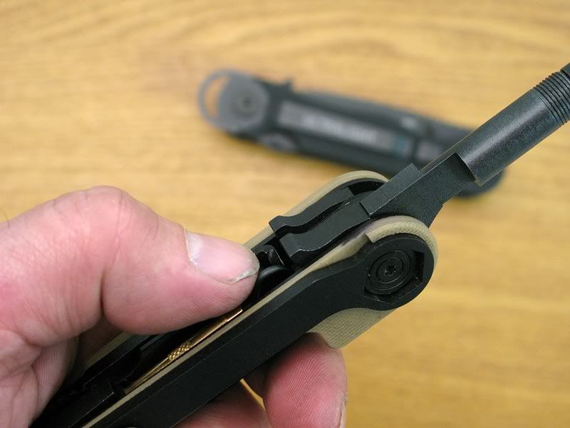 At this time I believe the blade arrangement for the tan-colored one is pretty well set, and should be available soon through various outlets like Brownells, etc. Like the current Multitasker plier tool, this model is designed specifically for the AR15/M16 enthusiast.