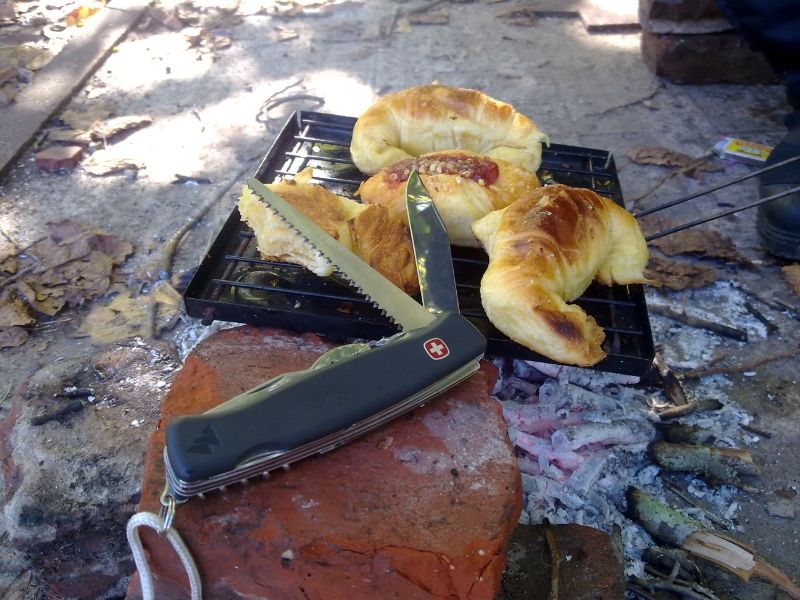 Hey, just thought i would add to this thread, nothing fancy, no swiss alps around here  :D just a fire and some breakfast with my wenger this sunday