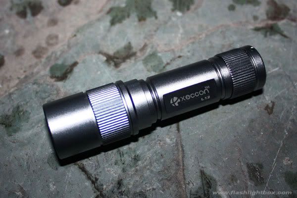 (not shown in photo) powered by 3C cells fitted into a 2D maglite with the spring cut down and reccess fitted into the inside of the tailcap.