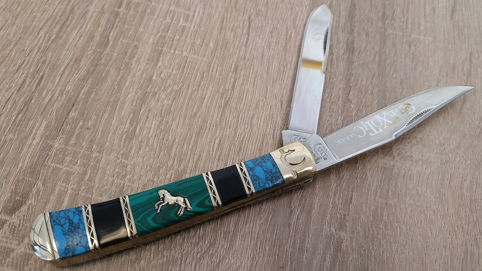 Rough rider Stoneworx model, a premium range with polished blades and springs. The blades are fine and it looks nice or cheap, depending on what you like, There is a grinding noise/feel in one blade but I have not cleaned it. Buy if you need something distinct or if you are a rapper... It looks too fragile to me for some reason..