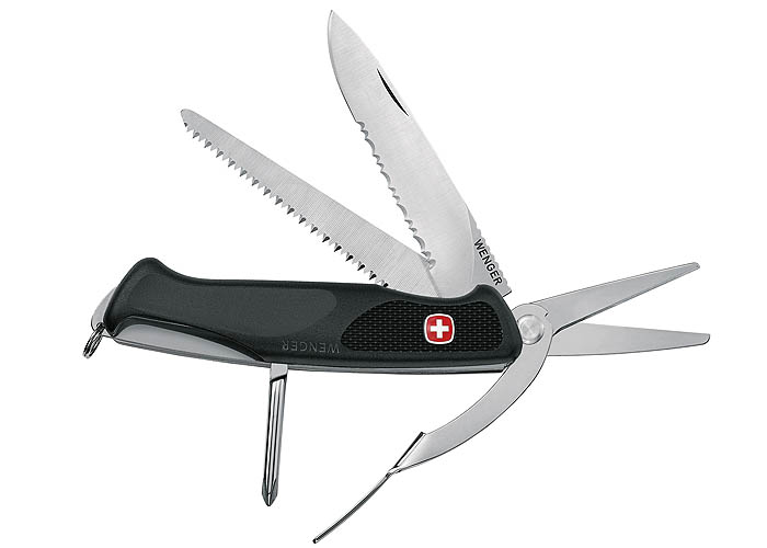 Rangerr grip gardner ?Features: 1. lock blade2. wood saw 3. heavy-duty scissors with double-jointed lever4. corkscrew5. key ring6. tweezers7. toothpickSize: 130mm