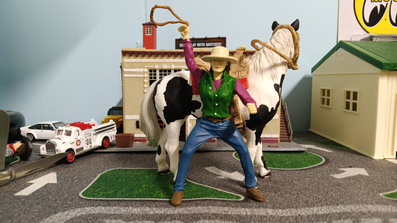 I FINALLY found the horse the mounted cowboy and cowgirl were designed to be used with, and I also will have a cowgirl I can keep boxed. I'll be keeping the horse boxed too, since these are hard to find. Heck, for a long time, I didn't even think the horse was ever made.