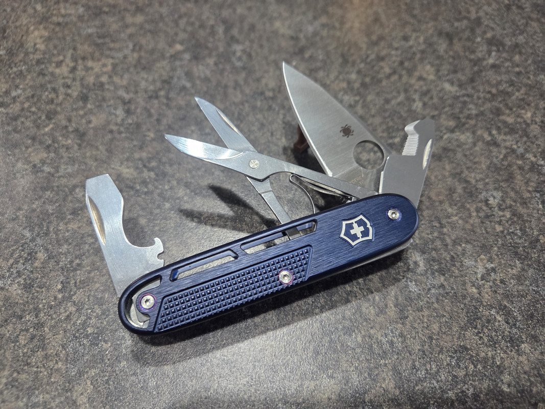 That looks awesome!!Question though. What's this different coloration from? Is it from the rivets and the Victorinox riveting process?