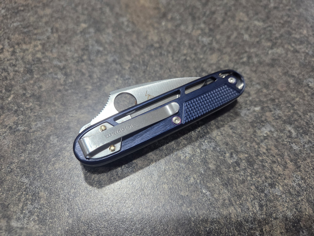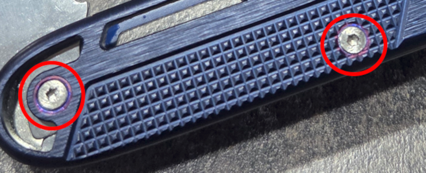 Heat from drilling rivets affected the anodization?Eitherway very cool mod and looks like the blade requires less modifying than regular 91mm