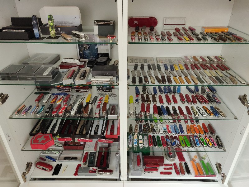 Everyone here has much nicer storage solutions than I. I use small Plano tackle parts boxes. They each hold 4 91mm Victorinox knives. Then the boxes are placed in a drawer. I am happy with my system. I am not as serious a collector as some here.😃