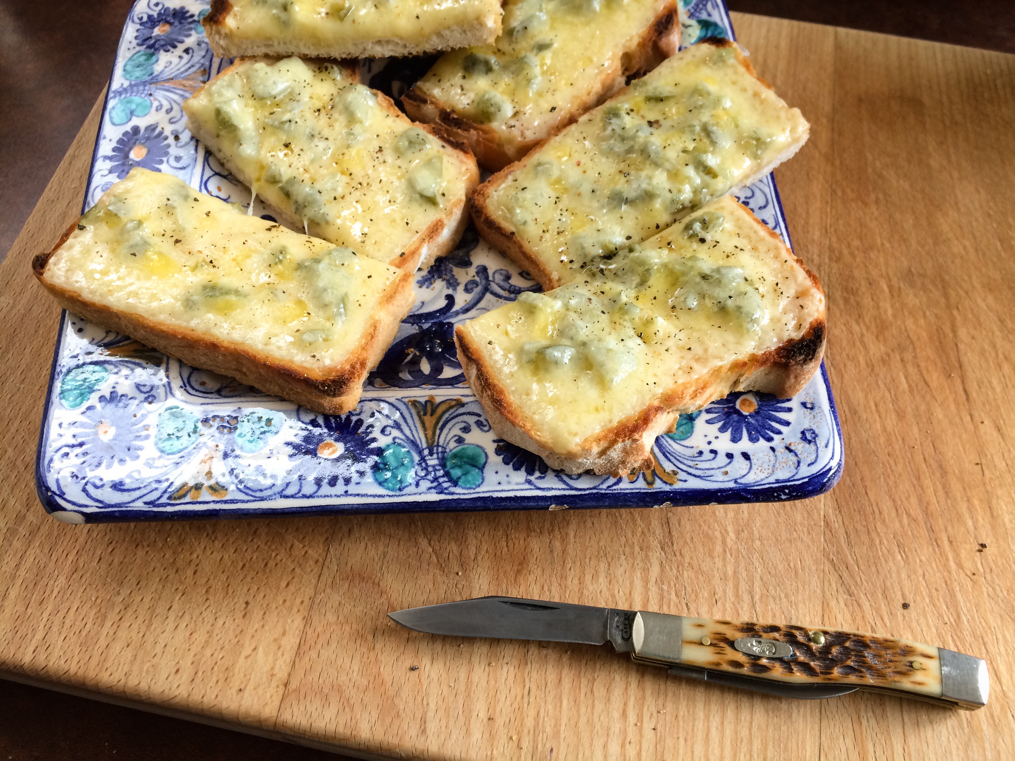 Cheese toast with olives - no thanks. Now make it jalapeños and I’m game.Hope your feeling better soom, Matt.