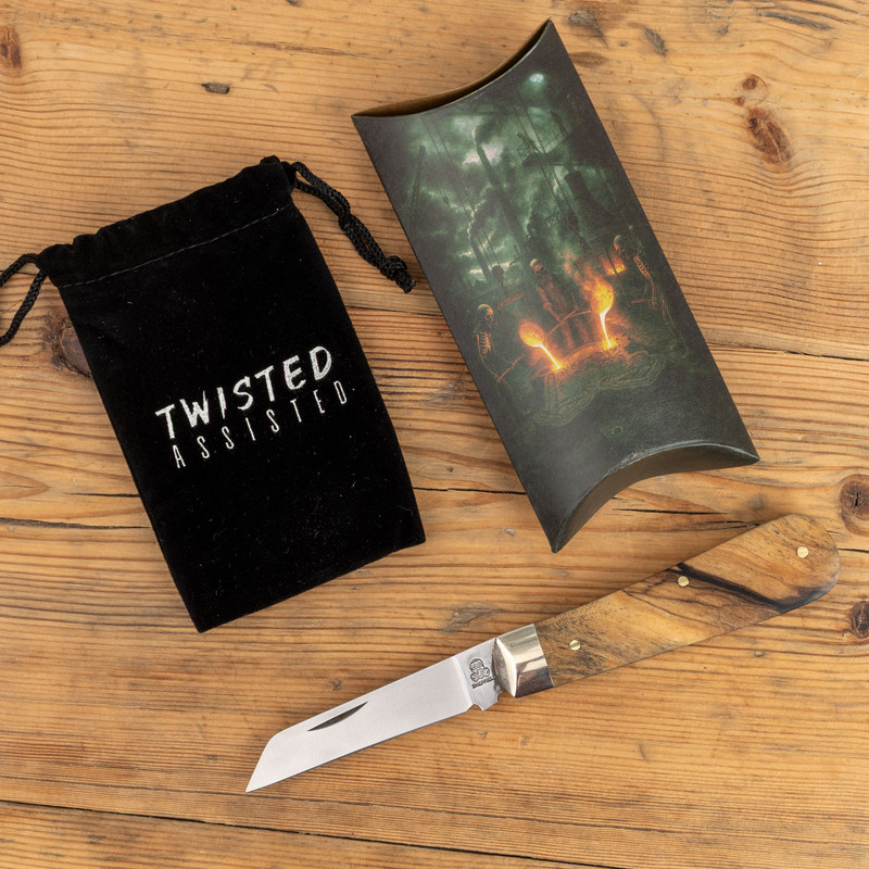 https://www.twistedassisted.co.uk/store/t.a.-sheffield-range-custom-shop/t.a.-lambsfoot-stabilised-spalted-birch/Please note that the pivot is stiff and the factory edge is dull (both normal for Arthur Wright and Son knives).