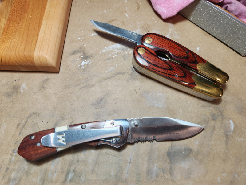 When I was in my teenage years, I first got interested in edged tools by way of lockbacks that had serrations on the inner half of the blade.  One of my friends would get these sorts of knives from a hardware store and would use them to within a millimeter of their limit. He would keep the plain edge razor sharp, and when he had sharpened the curved belly of the blade to a straight edge with the angles of a box cutter, he'd shelf the knife and get a new one. I envied how he could do precision work but also tear through rope and even metal tins with that knife.