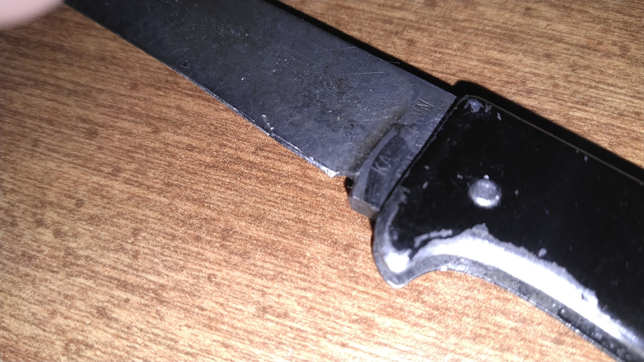 And the Kabar 3189 later on:  It's decently well made for $20, but the blade has a tiny bit of wobble and the G-10 handles aren't exactly even along the spine.