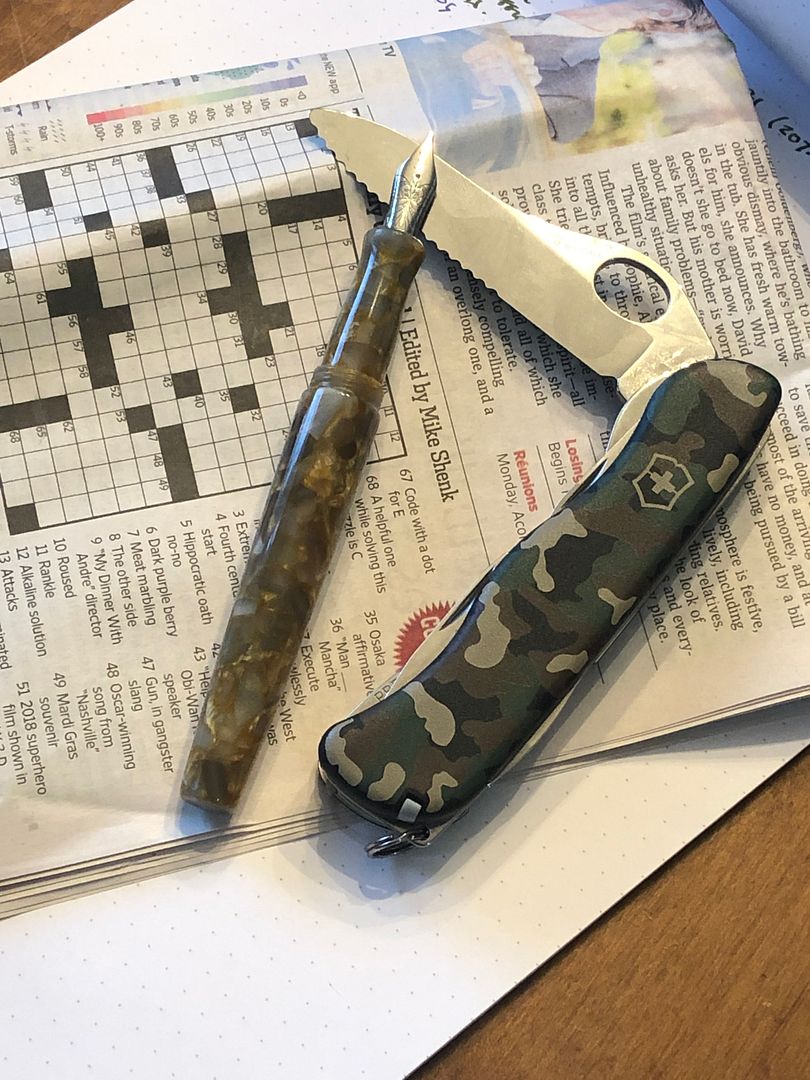 Saturday Crossword Puzzle, and a pen to match my pocket Trekker.