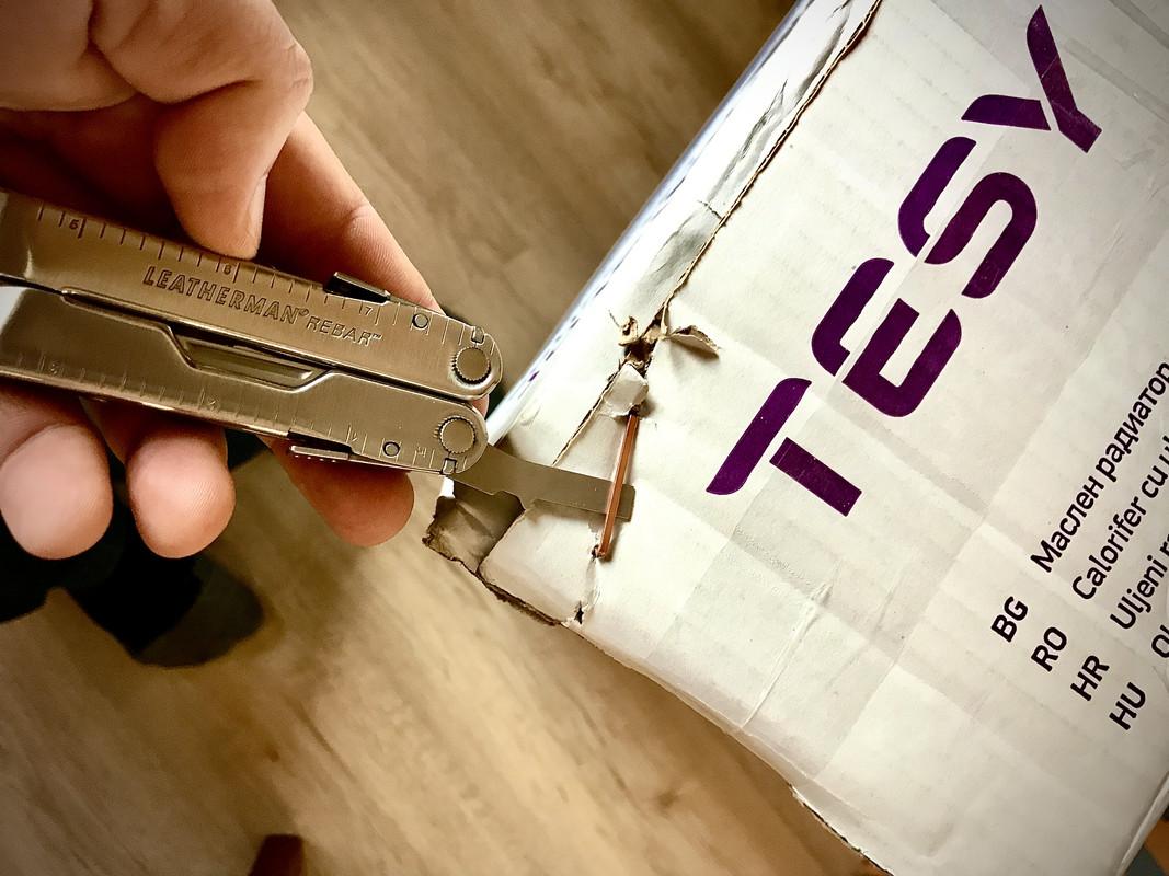 So, for the last day here is an action shot. Well, an at home dramatization shot. Went to a big box store today to get one more oil heater. The lady that was working at that section took the one I choose out of the warehouse and needed to open the box to take the warranty papers out. The box was stitched with those industrial copper staples. She started some kind of uneven battle with those, bare handed. I watched for few seconds, noticed a band aid on her finger and told her to stop because that seems to be a great way to get more band aids. Took out the Rebar and pried the staples with the large flathead. Even with a tool that wasn't easy, can't imagine how she does it without one. Didn't get action pictures in the store because I've already drawn enough attention from her colleagues.  :D