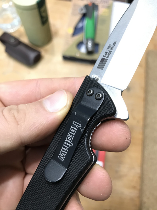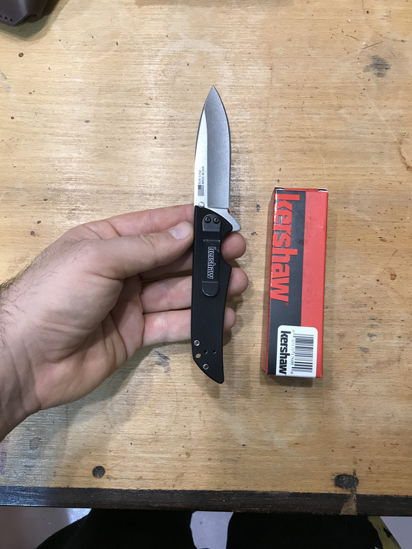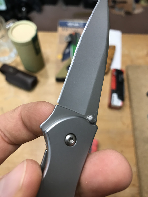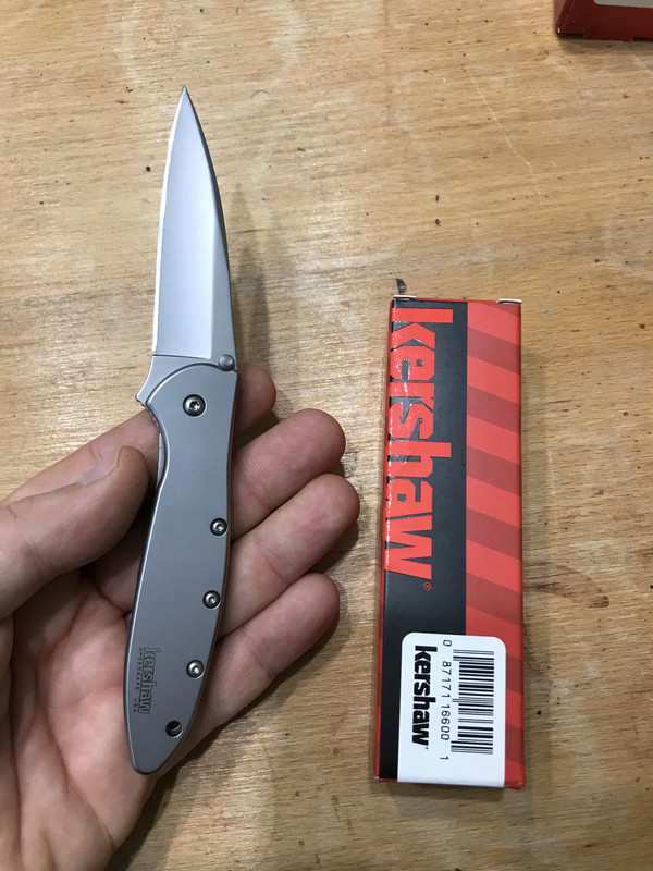 2/ Kershaw Leek. Carried, sharpened because it wasn't very sharp out of the box. Added small sharpening choil. Great condition, no scratches, sharpening was done carefully and well. Trade value 50E