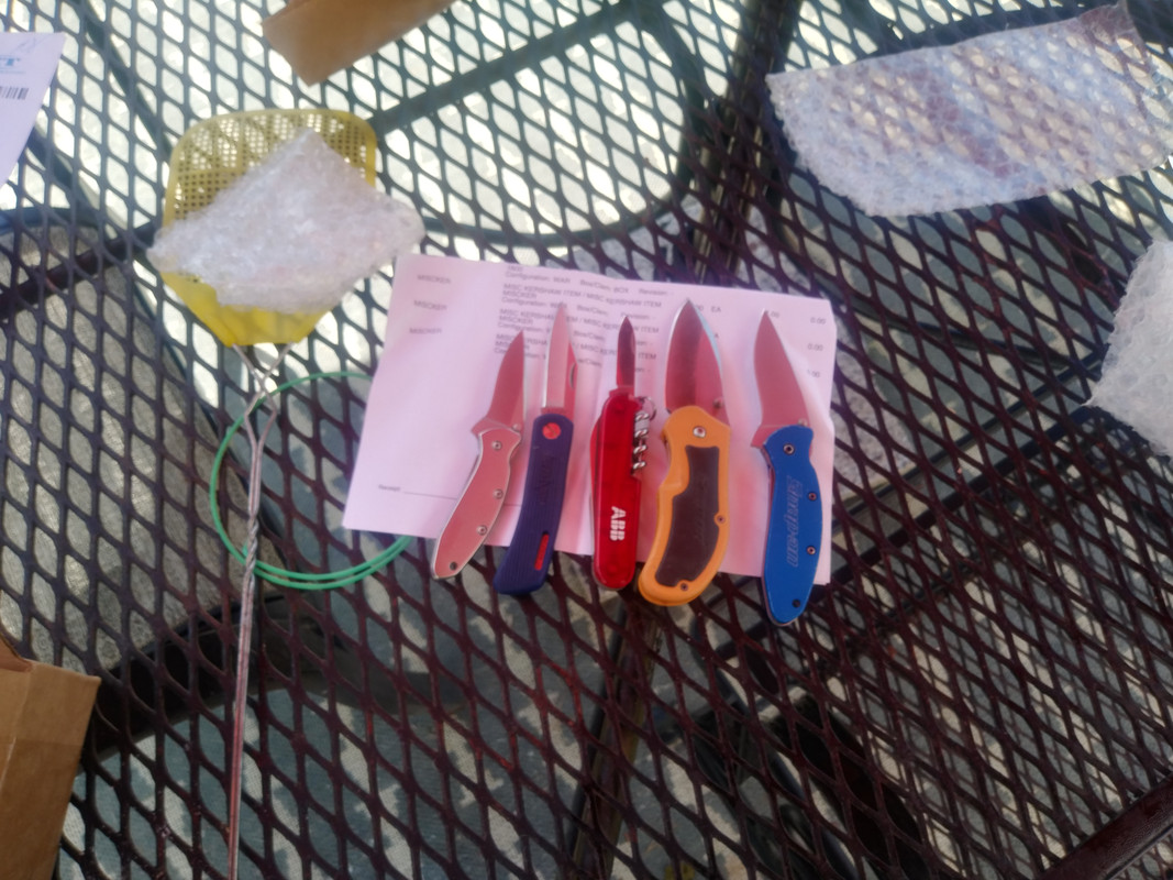 Day 8We bought a new blanket for the cat, which the Spartan helped unpackage. Small blade did the job well enough, though scissors would've been a bit easier. I was hoping to get a pic of her on it, but she's being a cat so you get the Spartan instead. We have a few similar fleece blankets downstairs that she likes to sit on, so we got one for upstairs in hopes of encouraging her to sit where we want.
