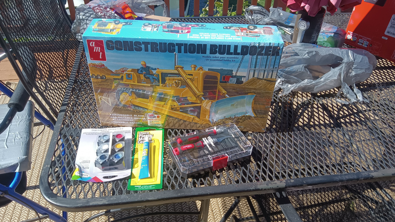 I had been looking at the AMT Construction Bulldozer kit (originally issued by AMT and ERTL as a CAT D8H, but Round 2 didn't bother to get the license for the reissue; and Walmart had it for a really good price.