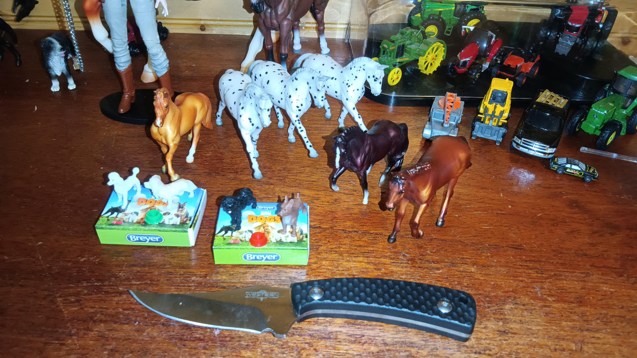Ended up being a series I already owned all but two (four counting the "chase" horses produced in tiny quantities and only in selected cases). The Warmblood (originally released as, and based on, Charlotte Dujardin's Valegro) was the only one I didn't have.  Ended up with three! of the Sport Horse (for a total of four). However, due to being hand-painted, I noticed a lot of differences between the four Sport Horses I now have--with the number of spots, shading on the nose and tail, etc.  The Quarter Horse is a much more glossy, coppery color than the other one from Series 3 I had.  The Paso Fino is darker than my existing one.