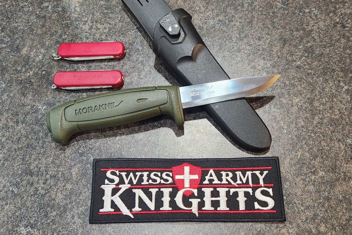 Made my selections, a pair of Wenger Esquires, the Mora and the Swiss Army Knights patch.  The Esquires are pretty nasty, tools don't snap open or shut.  Maybe with some tlc I can get them working smooth again, or maybe use them for parts.