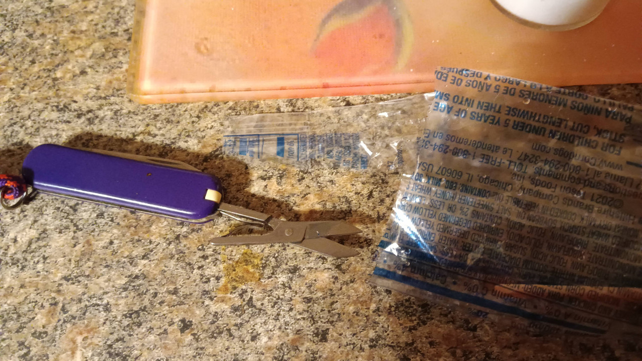 My throat is a bit raspy after recording some vocals in the studio recently so used the main blade to cut open some slippery elm lozenges.