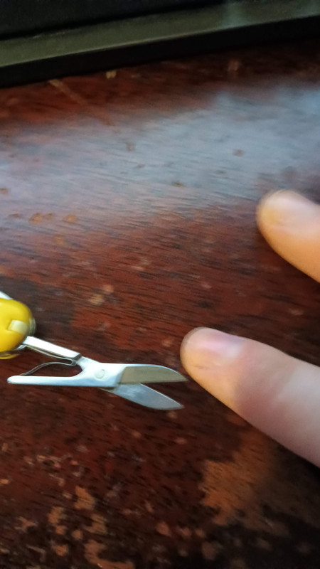 I keep from losing this thin little bugger by clipping it to my flashlight. Helps keep it anchored in my coin pocket. Only use today has been some nail care. Used the scissors and the file. Might peel an orange if I get back from class before my next IEP meeting.