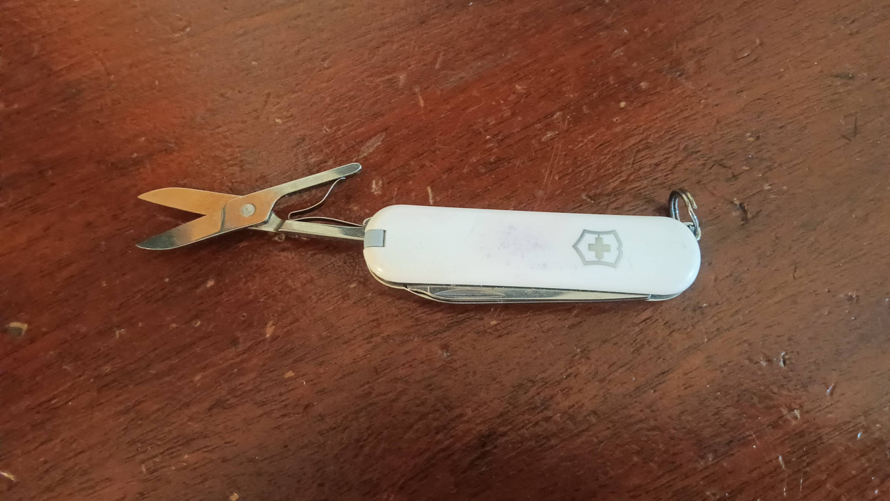 Opened more than a few things with the scissors, and dealt with a flap of loose skin that kind of bubbled up after dealing with the stiff opening button on the Quik-Action.