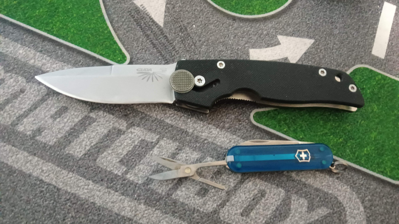 Camillus CUDA Quik-Action Jr., ca pre-2003 (ATS-34 and US built, as  opposed to 2003-08 when they were 154CM and Taiwanese-made). Only cost me $25, and MSRP in 2002 was $168.