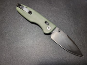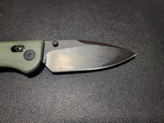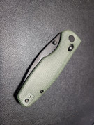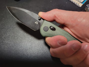 The handle on the Predator is has skeletonized steel liners with green micarta scales. I like the feel of the micarta, smooth yet offering enough texture. Chamfering is done well around all the edges making it comfortable to hold. Handle is designed so my hand naturally falls where it's intended to. The two finger guard is different from the index ones I'm used too. My middle finger doesn't really fit in this groove but rather rests on the hump that transitions to the heel of the knife. It's not as uncomfortable as you might think, but I think this channel could have been moved back just a smidge. Operating the cross-bar lock is easy with a decent amount of spring to it. It's easy to grab, and didn't feel like it was too wide. Since cross-bar locks have been flooding the market, I've come to concluded you can screw one up.