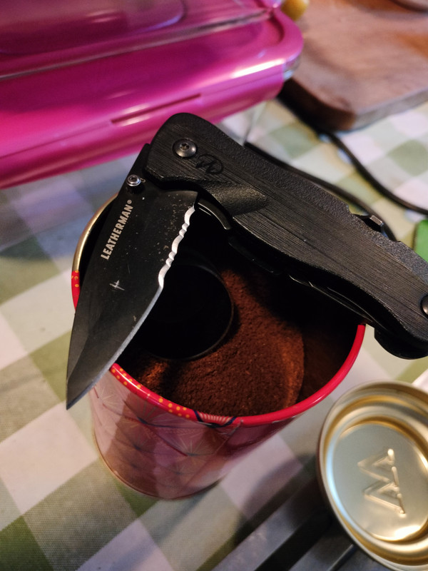 The leatherman Creater helped open coffee today...are you seeing a pattern, food prep is my primary knife use at the moment...