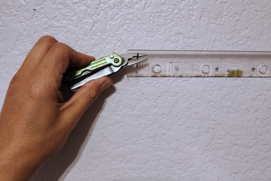 Using the pliers to try and yank out a stubborn nail.  Didn't want you use a hammer for fear of damaging the drywall.