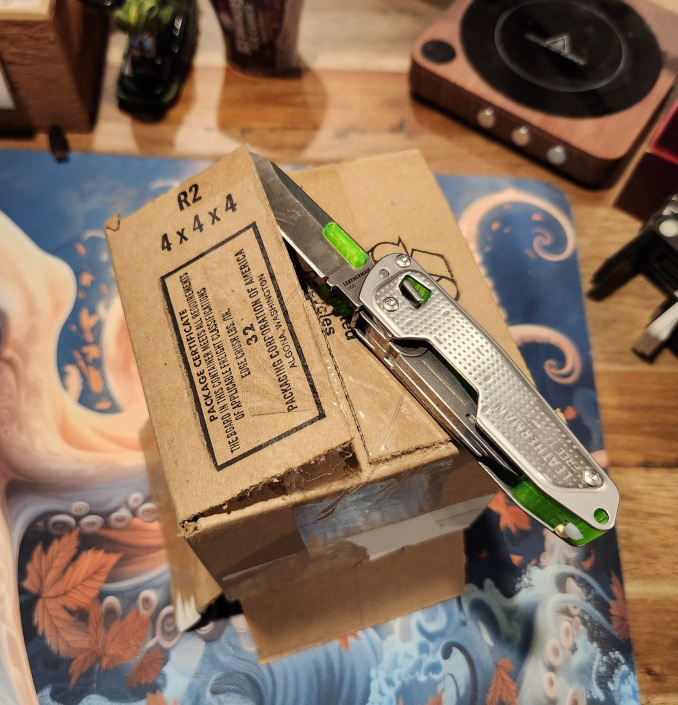 Kershaw Good Buddy--I'm thinking '70s vintage? These were fairly early, and made well into the '90s. Japan-made. I also have a different model I got alongside it--money clip with blade and scissors. Was my money clip for years--as I thought I lost my Ambassador Money Clip--turns out, it was wedged for 5+ years under a dresser drawer! I hadn't gotten rid of the T-Shirts that I never wore in that drawer, and had I not pulled it out, I never would've noticed. Blade and nail file, screwdriver, and bottle opener combo tool.