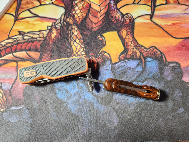 I don't remember the demo knife I had with a round opener stud on the screwdriver. I do remember all the blades were stiff. I also had a civvy model. DuraTool or whatever they called them. You know, Barry? If my Dad hadn't swiped my Cub Scout knife I might not have been in this need to acquire pocky knife mess. One knife would have done me for years and years. At least until I found another one. In fact, I was happy carrying my Victorinox Trooper until I joined up with this group of wackos. You could set it to music and make a jingle out of it. I'm a wacko,You're a wacko,He's a wacko,She's a wacko,Wouldn't you like ,To be a wacko too?G