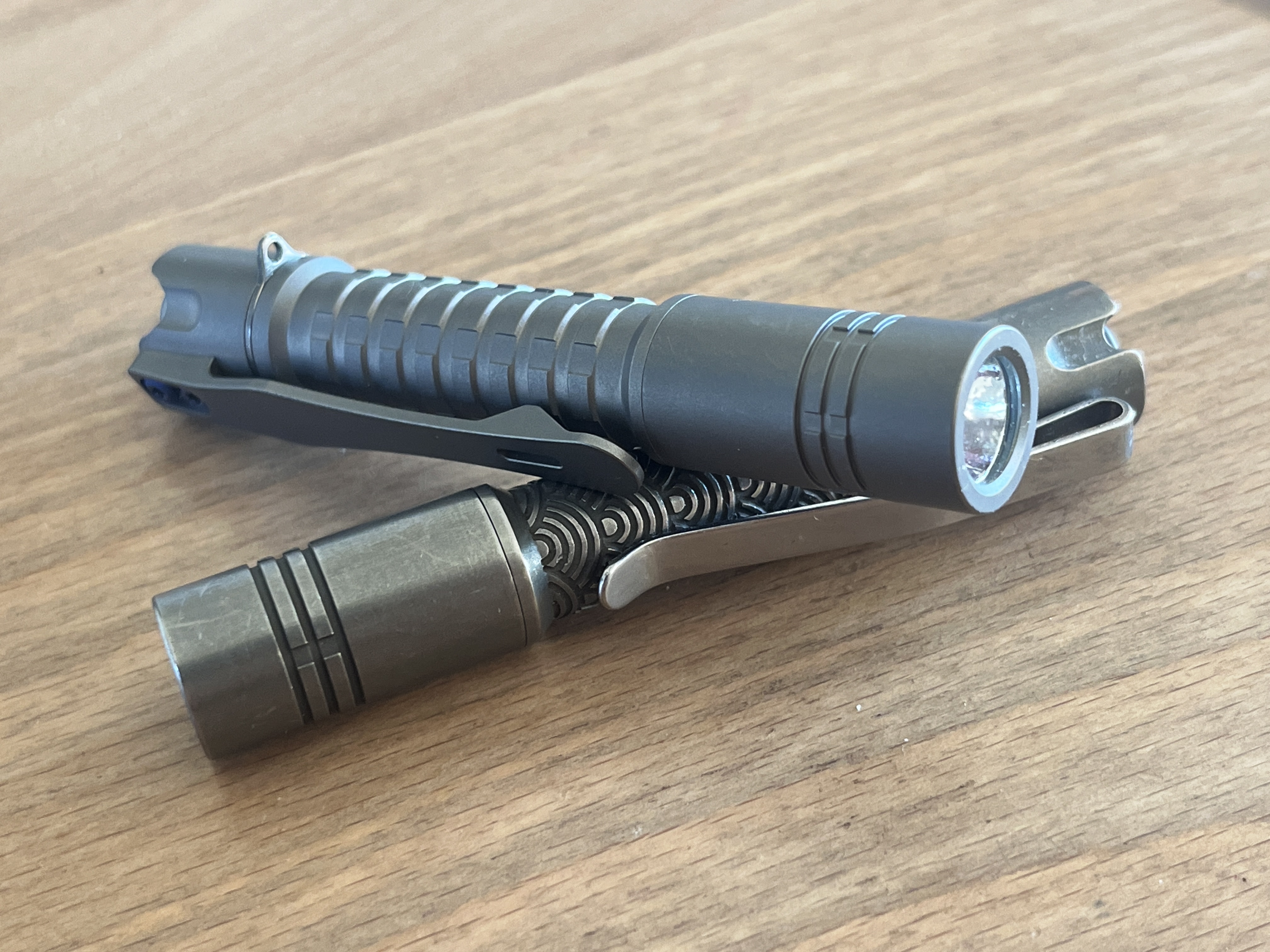 Lovely copper carry! Those are going to patina up nicely.Out of interest , how much does the copper version of the light weigh with battery in?