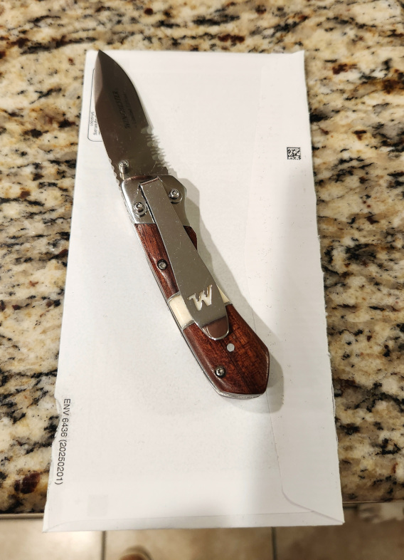 It's a pretty knife but the fit and finish isn't there unfortunately.  I learned later that it's originally part of a nice boxed set.  The liner lock wasn't engaging all the way.  I couldn't remove the pivot screw to try and file down the edge of the liner a bit.  Feels like they used really cheap screws and red locktite.  I ended up filing the end that meets the liner lock so that it would fully engage.  It's actually sharper than I expected but we'll see how long that edge lasts.