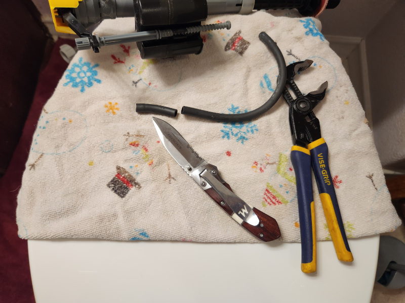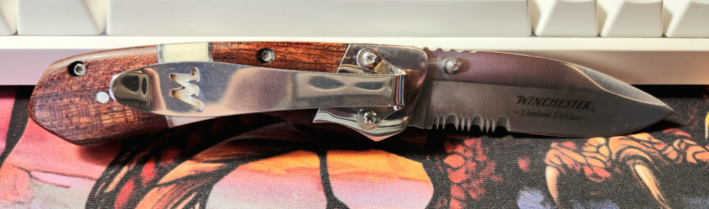 Breaking out the Winchester.... knife with PE and SE.  Used it to cut down a rubber hose for the float in our downstairs toilet.