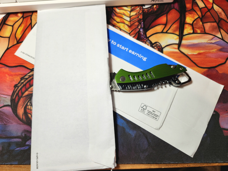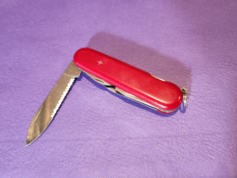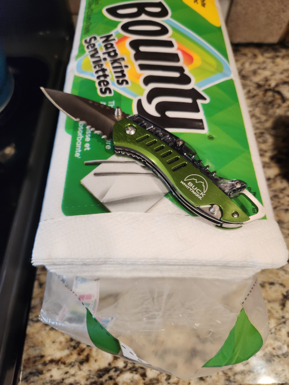 We had a high of 78°F over here. Tell you what, we'll split the difference. I'll send you 31° of warmer weather and you send me 31° of cooler weather. Deal?! Day 8Using my Wenger Highlander this week. Made short work of cutting open my son's allergy meds..