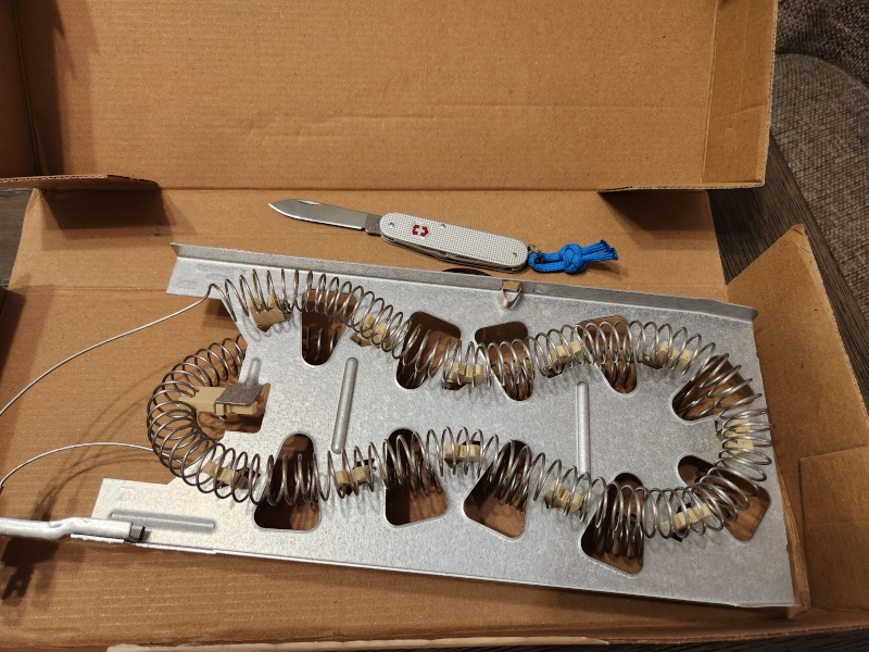 Cut open a package and low and behold... it was the new heating element for our dryer.  The old element lasted 13yrs.  Hopefully this one lasts 13 more.