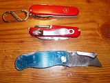 http://edcforums.com/index.php?topic=20293.0 I am going to put a clip on my Spartan but i am waiting for a Swiss ballpoint pin i ordered. I want mod the scale and replace the tooth pick with it. Yesterday i could not wait any longer I have Coghlan's knock off SAK and a old Home Depot Husky folding utility so i thought i would test drive the mod. The mod was about as easy as they come the only hard part was removing the old clip. I did not have the right bit. I just drilled the holes and used a screw as tap to thread the holes. The holes threaded in to the scales held nicely.