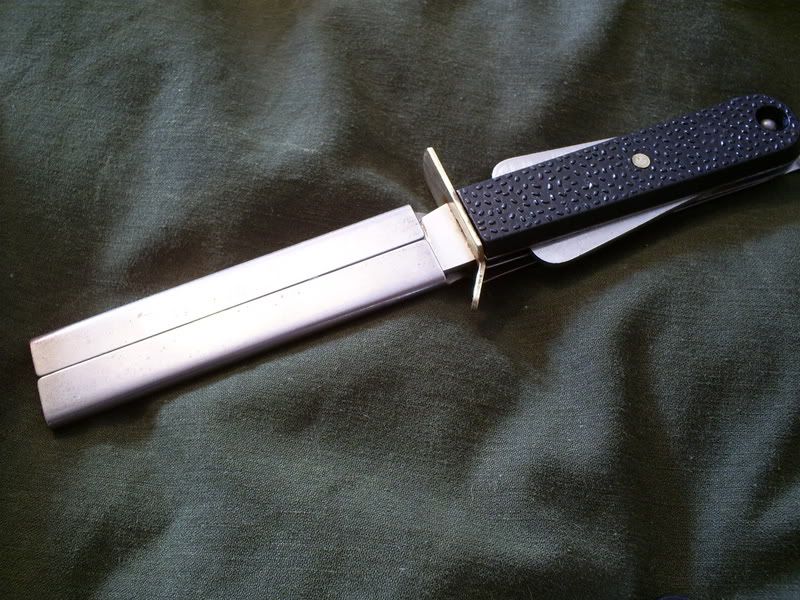 Awesome! I'm envious of anything with the Joe Rodgers name on it, but these knives are beyond cool! Fascinating mechanism with a great history!Any idea what the numbering on the blade or on the sheath/guard means?