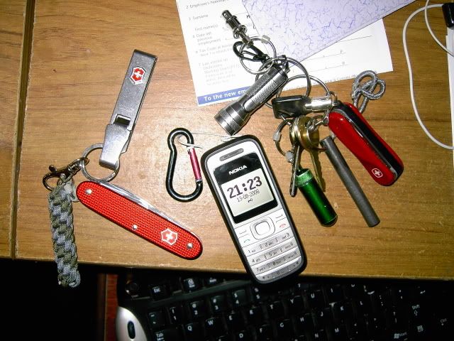 Quote from: Micky d on January 25, 2009, 06:22:49 PMThis is mine, it's pretty static, though I do add a Swisstool and Fenix LD10 for work (Image removed from quote.)Is that a Streamlight KeyMate? If so, what do you think of it? I got one in Maine and I like it, but I'm not a big fan of lights that use watch batteries since buying replacement batteries cost more than the light did!As for knife content, well here's the closest I have to a dedicated EDC knife at the moment:(Image removed from quote.)Def