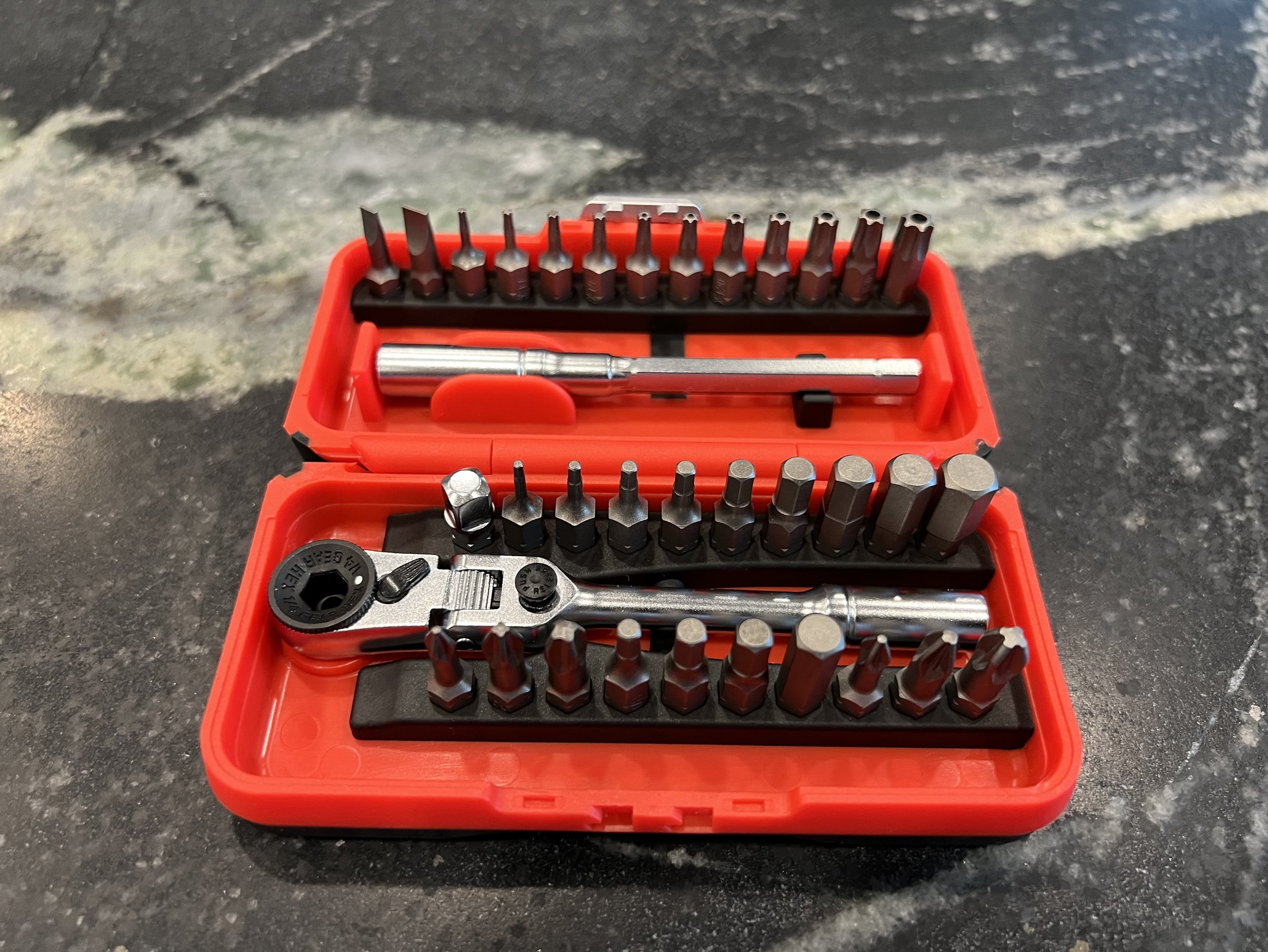 It's so tiny! Basically a Topeak head attached to the in-line driver. I still think this is overpriced. And it may be too small for some people. The Topeak set is only a couple dollars more, and has a wallet, twelve bits, ratchet, extension, and two tire pry bars.