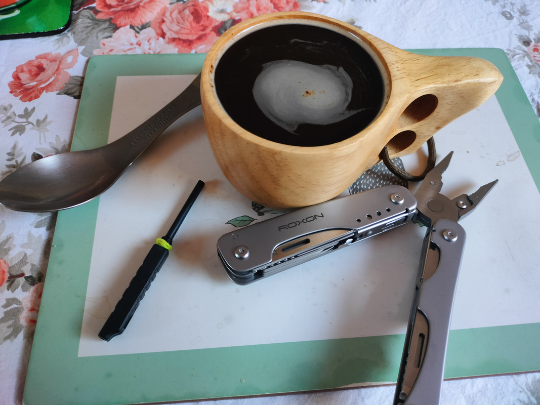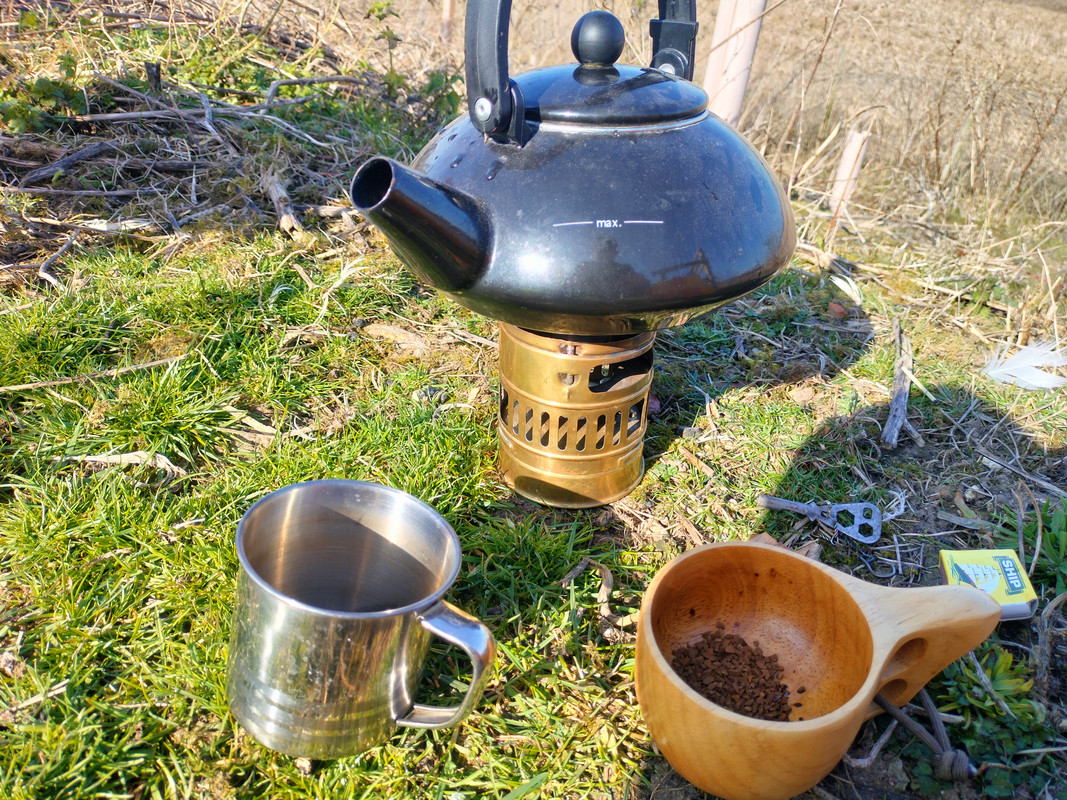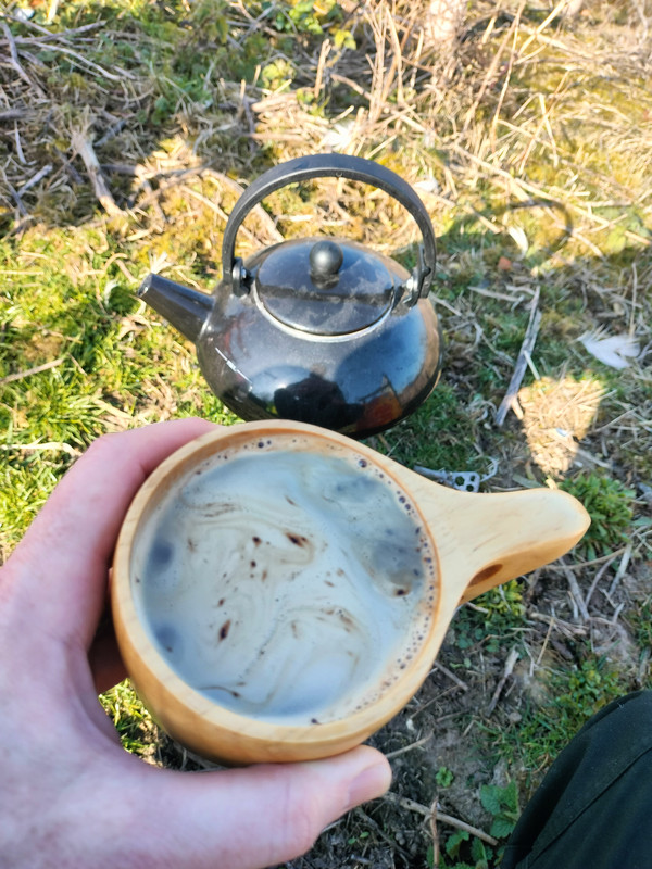 11'ish tea / coffee break, have been in the garden clearing the Wendy house ahead of my soon to be 8 year olds party...The wife and children are outside, so tea in the sun shine....A good example of a correct temperature coffee