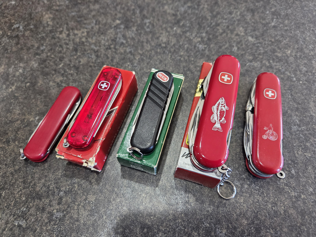 Didn't realize until I saw the other Wenger badge request and then looked and found that I do have 5 Wenger models. From left to right, the Esquire, Crusader Lite, Swiss Legend (which is basically an Esquire w/ Buck scales), Bass, and Cyclist.